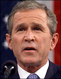 Description=President Bush holds up the police shield of New York Police Officer George Howard who died while trying to save others in the World Trade Center, during his address to a Joint Session of Congress on Capitol Hill in Washington Thursday, Sept. 20, 2001. (AP Photo / Win McNamee, Pool)Description=Terrorist attacks in America 11.09.2001