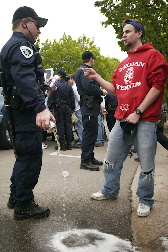 An estimated 20,000 people packed the 400 and 500 blocks of Mifflin Street Saturday to celebrate the annual spring bash. Approximately 125 Madison Police Department command staff and officers were assigned to work the block party. Madison Police arrested 225 partygoers who were charged with a total of 317 violations. Despite the high cost of police enforcement Ald. Mike Verveer, District 4, said "I would really be shocked if the police costs were not covered by the fine revenue because so many people were ticketed."A Mifflin Street Block Party reveler confronts a City of Madison Police Officer after the officer seized the man’s Pabst Blue Ribbon beer. Approximately 125 Madison Police Department command staff and officers were assigned to work the block party and were deployed at 10 a.m., making their first arrests at about 11 a.m.